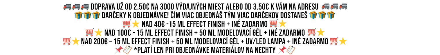 Ponúkame kompletný sortiment pre gélové nechty a manikúru: Farebné gély, DUAL formy, Śtetce, Pilníky, Nail Art, pigmenty a iné príslušenstvo, bez ktorého sa nezaobíde žiadne profesionálne nechtové štúdio.