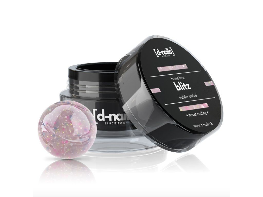 Kolekcia Blitz prináša modelovacie gély v elegantných kamuflážnych a jemných odtieňoch s intenzívnym trblietavým efektom, ktorý naživo pôsobí ešte výraznejšie než na fotkách. Vďaka vysokému obsahu jemných častíc nechty doslova žiaria.